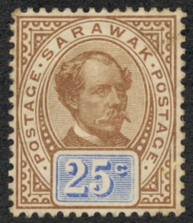 Sarawak. Scott 45, VF H, 1899 25c brown & ultra CV $12.00 (Image)
