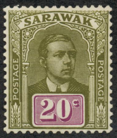 Sarawak. Scott 66, F-VF LH, owner's mark on back, 1918 20c olive bis & vio, unwmk. CV $10.00 (Image)
