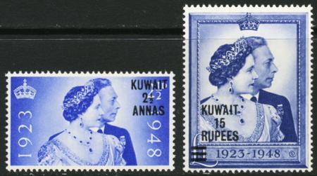 Kuwait. Scott 82-83, VF NH, 1948 Silver Wedding CV $69.50 (Image)