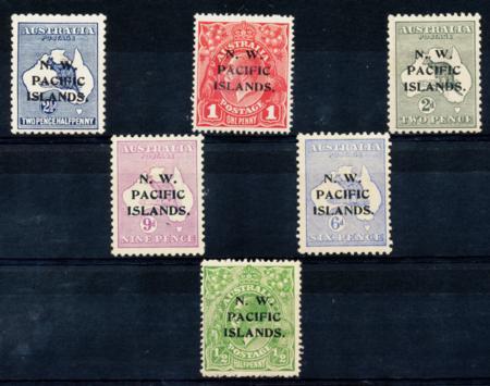 North West Pacific Islands. Scott 2, 12, 13, 19, 32, 41, mint H, 1915-1923, 6 stamps CV $89.50 (Image)