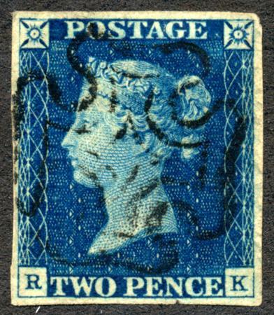 Great Britain. Scott 2b, XF, Lightest unobtrusive Maltese Cross Cancel, in Black, 1840 2p deep bright blue CV $1500+ (Image)