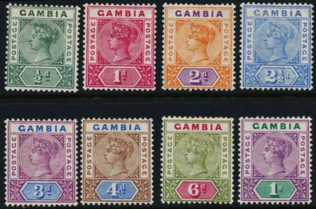 Gambia. Scott 20-27, F-VF HR, 1898 ½p-1sh Victoria Set of 8 CV $153.00 (Image)