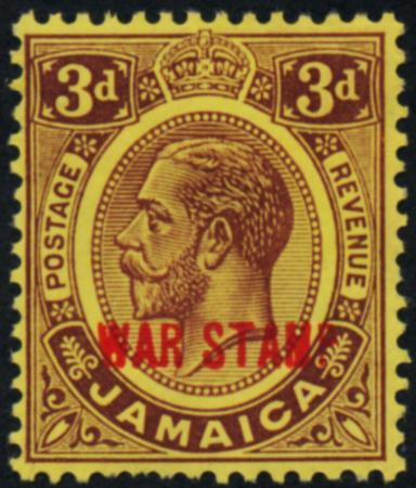 Jamaica. Scott MR11, VF H, 1919 3p War Tax Stamp CV $15.50 (Image)