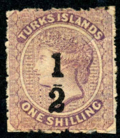 Turks Islands. Scott 15, Fine NG, rough perfs, 1881 ½p on 1sh violet CV $155.00 (Image)