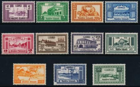 Maldive Islands. Scott 11-19, F-VF LH, 1933 set of 9 CV $77.30 (Image)