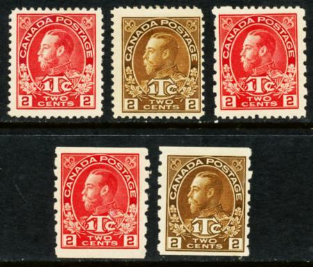 Canada. Scott MR3-MR7, F-VF H, 1916 War Tax Issues CV $295.00 (Image)