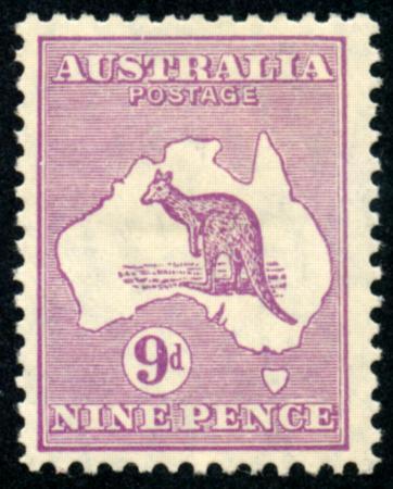 Australia. Scott 9, Fine LH, 1913 9p purple CV $140.00 (Image)