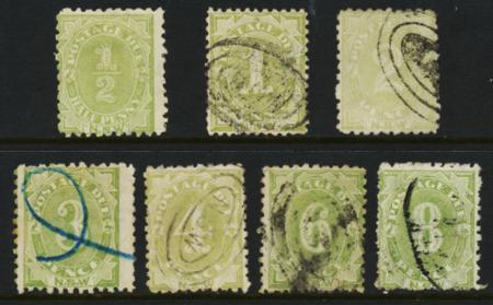 New South Wales. Scott J1-J7, F-VF, J1 is mint, 1891-92 ½p - 8p part set CV $71.35 (Image)
