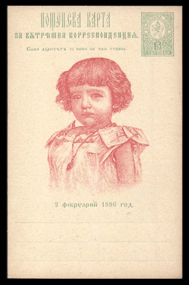 Bulgaria H&G 15g,5s Green, 1896 Postal Card of Crown Prince Boris in Dark Red and Green, mint and in excellent condition (Image)