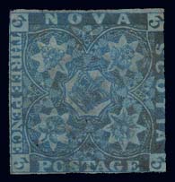 Canada - Nova Scotia 3,3p Dark Blue, three margins, just in at upper right, crease, very attractive and scarce! Cat($300) (Image)