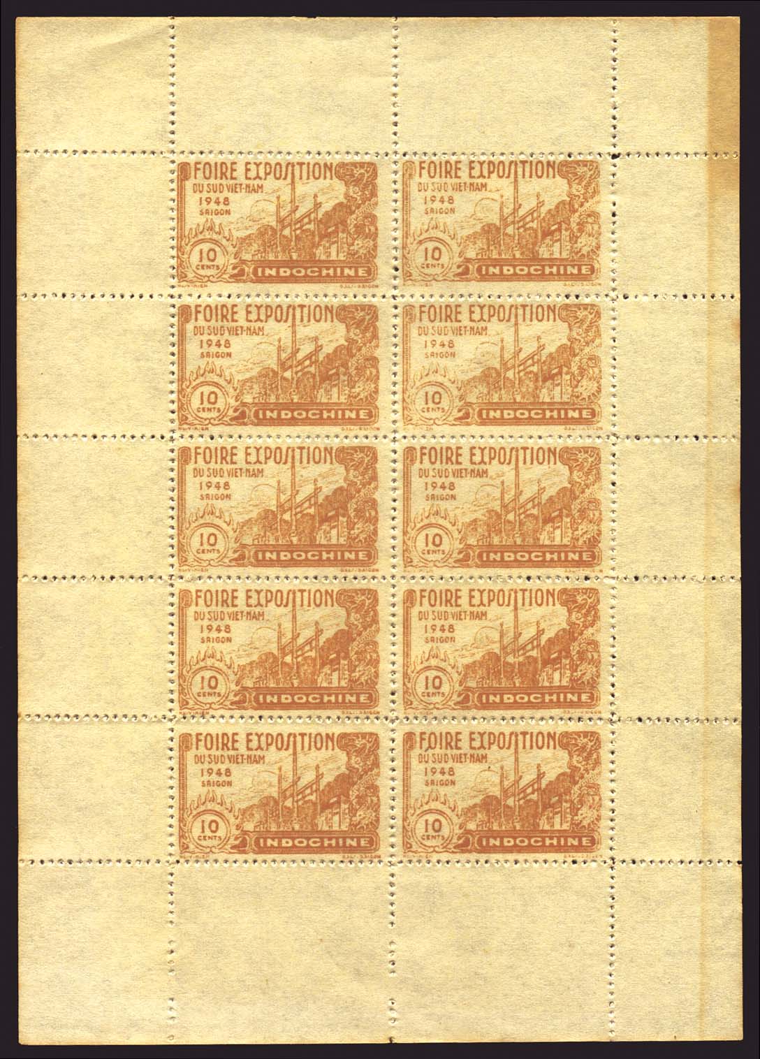 Indo-China 1948 Saigon,Fair Show Labels, Fine Unused, ngai, 10c ocher pane of 10 and 2p red souvenir sheet of (1). Fresh set and seldom seen! (Image)