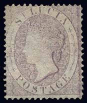 St. Lucia 13,(6p) Pale Lilac, VF OG, Stanley Gibbons #17a Cat($125) (Image)