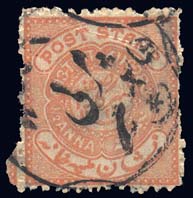 Indian-Hyderabad 4C,½a Orange Brown, F-VF, postally Used Cat($30) (Image)