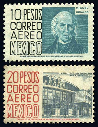 Mexico C216-17,10p Black and Aqua and 20p Carmine and Blue Gray, F-VF LH Cat($81) (Image)
