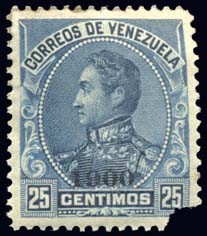 Venezuela 158,25c Blue, "1900" ovpt, XF OG, missing lower right corner and with some gum-soaked perfs. So sad...very scarce filler Cat($600) (Image)