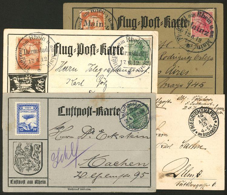 FLIGHTS: 4 Cards flown in aerial exhibitions between 1912 and 1915, one sent to Argentina (rare destination for these cards!), very fine quality! (Image)