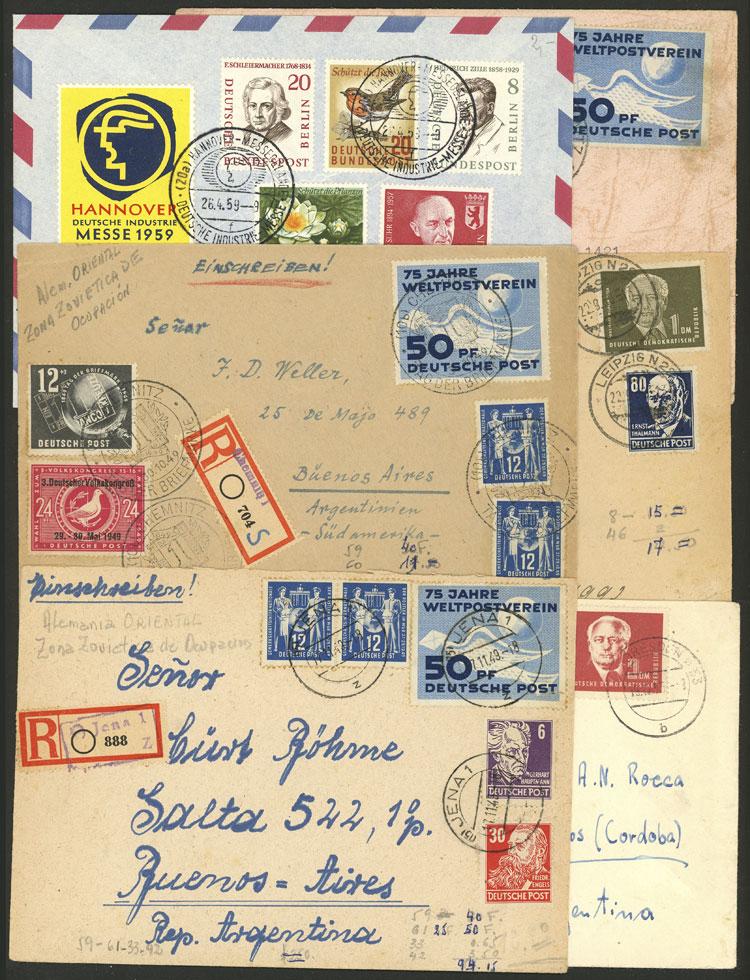 6 Covers sent to Argentina between 1949 and 1956, good postages! (Image)