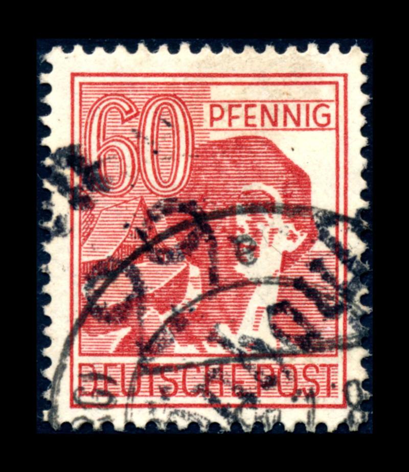 GERMANY 1948 MICHEL #179V1a STAMP VF /O. German 60 pfennig stamp overprinted "29 Schönhausen" for use in the Russian Zone and postmarked with a date stamp 8-7-48. The stamp comes with a 2009 Certificate from German expert Dr. Julius Boheim. Michel 550 euros ($800.00). (Image1)