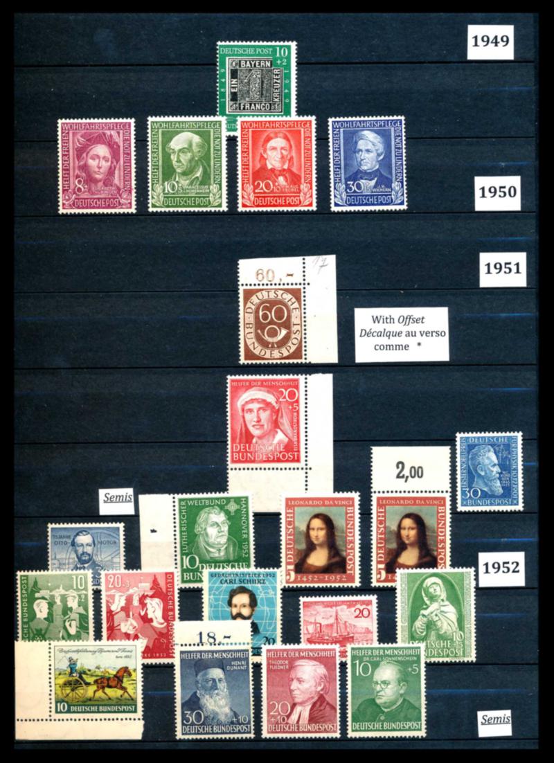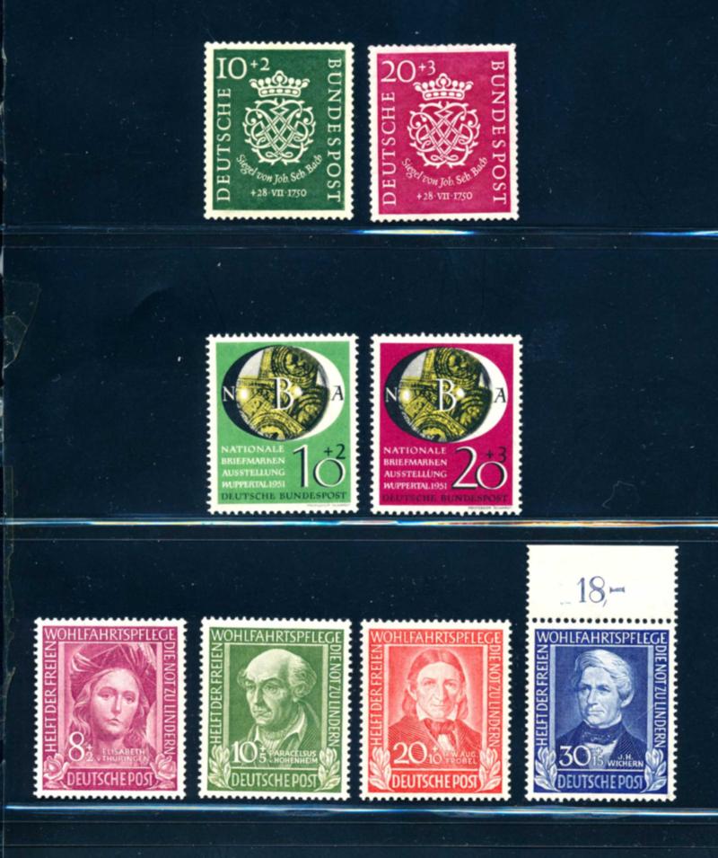 GERMANY 1949-51 SELECTION 3 SETS VF **. Semi-postal issues B310-13, B314-15 and B318-19. The stamps are mint never hinged (B313 top numbered margin). Scott $325.00 CAD. (Image1)