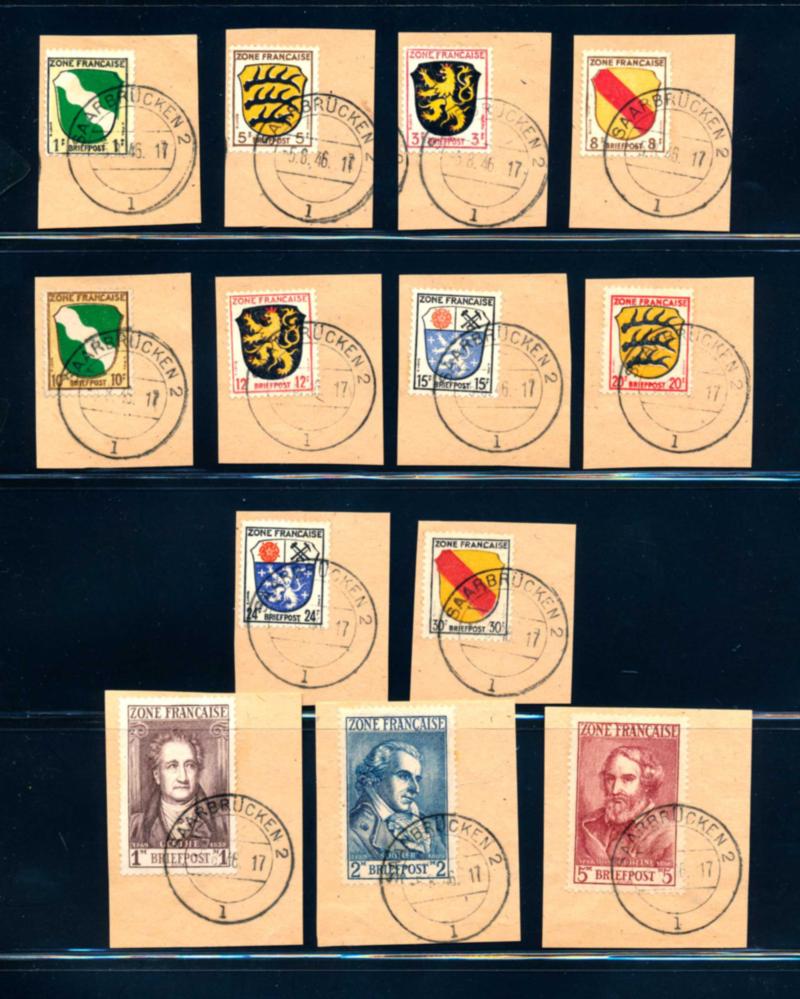 GERMANY 1945-46 SET #4N1-13 STAMPS VF /O. Germany, French zone, complete set of 13 stamps nicely canceled on piece. Scott $250.00. (Image1)