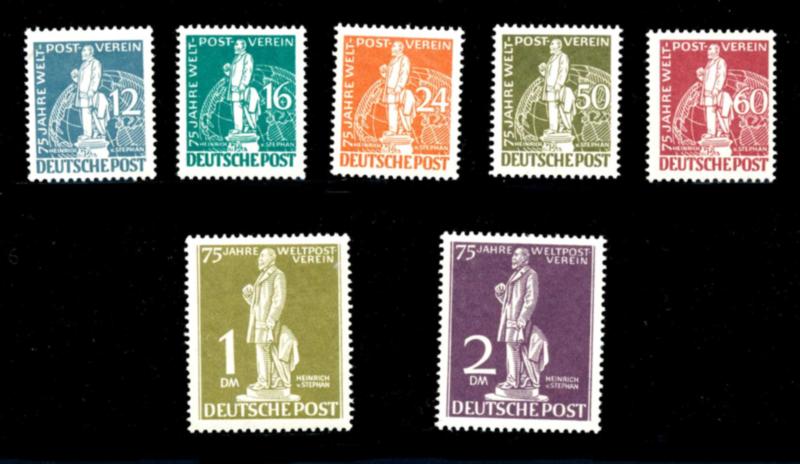 GERMANY BERLIN 1949 #9N35-41 SET VF-XF **. Universal Postal Union issue, superb set of 7 stamps mint never hinged. 2005 certificate from German expert Schlegel. Scott $805.00. (Image1)
