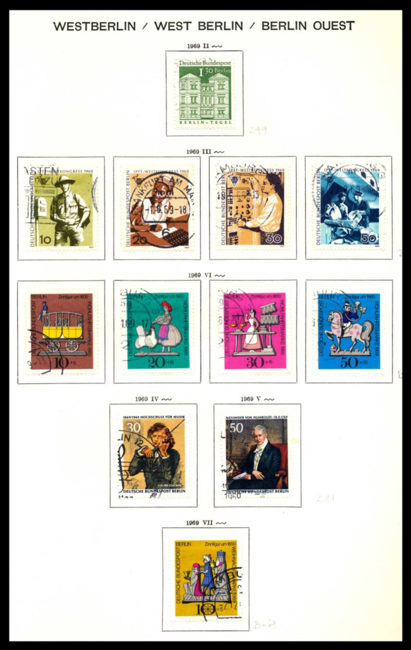GERMANY BERLIN 1959-87 COLLECTION, STAMPS VF /O. Shaubeck album containing a used collection of 320 stamps and 7 souvenir sheets. Starting bid $40.00. (Image1)