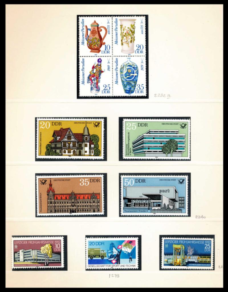 GERMANY D.D.R 1982-83 COLLECTION, STAMPS VF **. Safe hingeless album containing 155 stamps and 14 souvenir sheets mint never hinged. Starting bid $40.00. (Image1)
