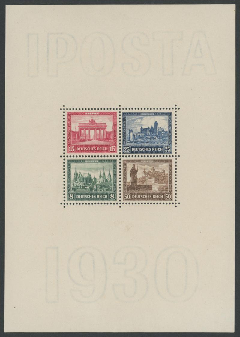 1930 Berlin IPOSTA Philatelic Exhibition Pictorials M/S SG MS464a (Michel Block 1), the acidic gum removed, Cat £700 (€550) for mounted. (Image1)