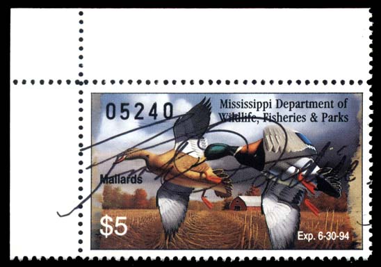 MS18Gs,Mississippi 1993 Handsigned Governor's Edition, by Governor Kirk Fordice (deceased), XF NH, upper left corner margin single, only (250) signed Cat($275) (Image)