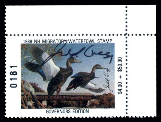 NH7G(s),New Hampshire 1989 Hand-signed Governor's Edition, by Governor Judd Gregg, upper right corner margin single, Superb NH, only 300 issued Cat($250) (Image)