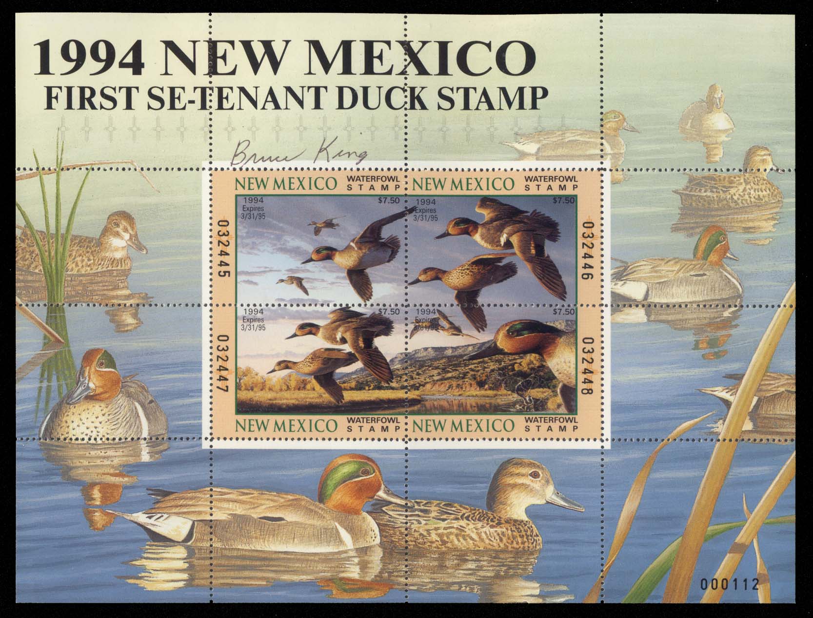 NM4G(s),New Mexico 1994 Hand-signed Governor's Edition, Souvenir Sheet of 4, by Gov. Bruce King, VF NH (Image)