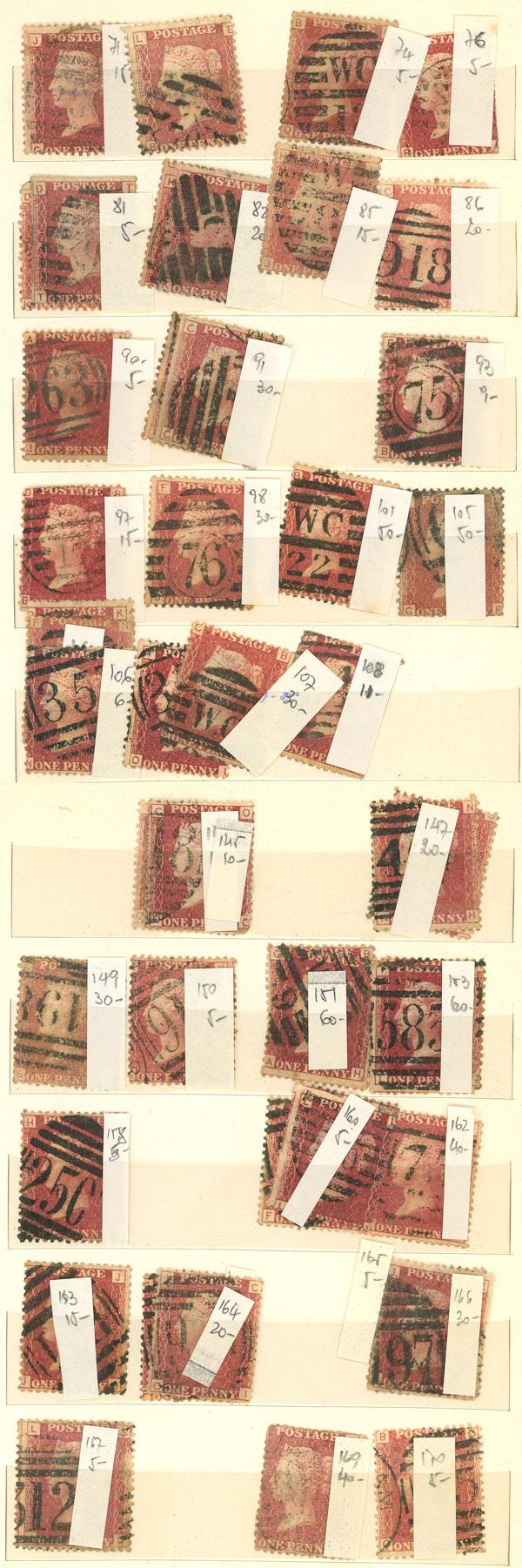 Yvert 26, 1858/64 1p. carmine red, small stockbook with over 100 stamps, most are classified according to plate number, it includes several very interesting examples, low start! (Image)