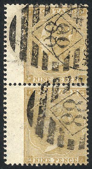 Sc.40, 1862 9p. light bistre, vertical pair with left sheet margin, VF quality, catalog value US$800 (Image)