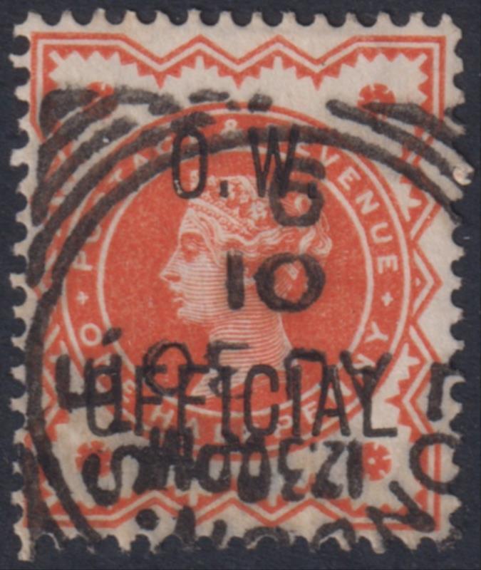 1864 1d rose-red (HA/AH), plate 100, p14, 4 corner letters, large crown wmk. Perf oddity: double perfs at top, the lower row 5mm into design. Also misperfed at bottom of stamp. SG 43 var. FU.