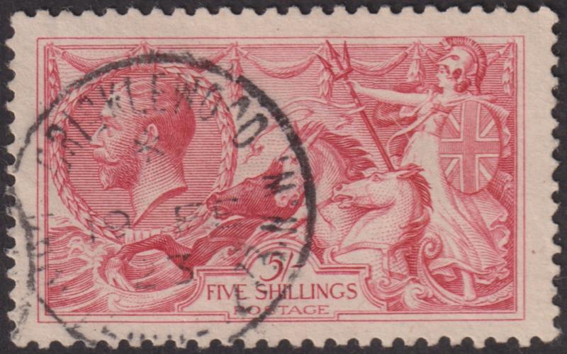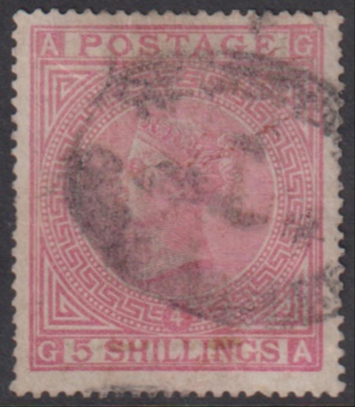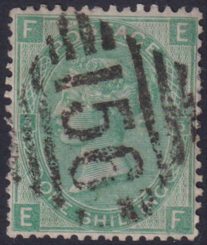 1865 1/- green (EF), plate 5, large white corner letters, spray of rose wmk. SG 117. Cat £45. GU. (Image)