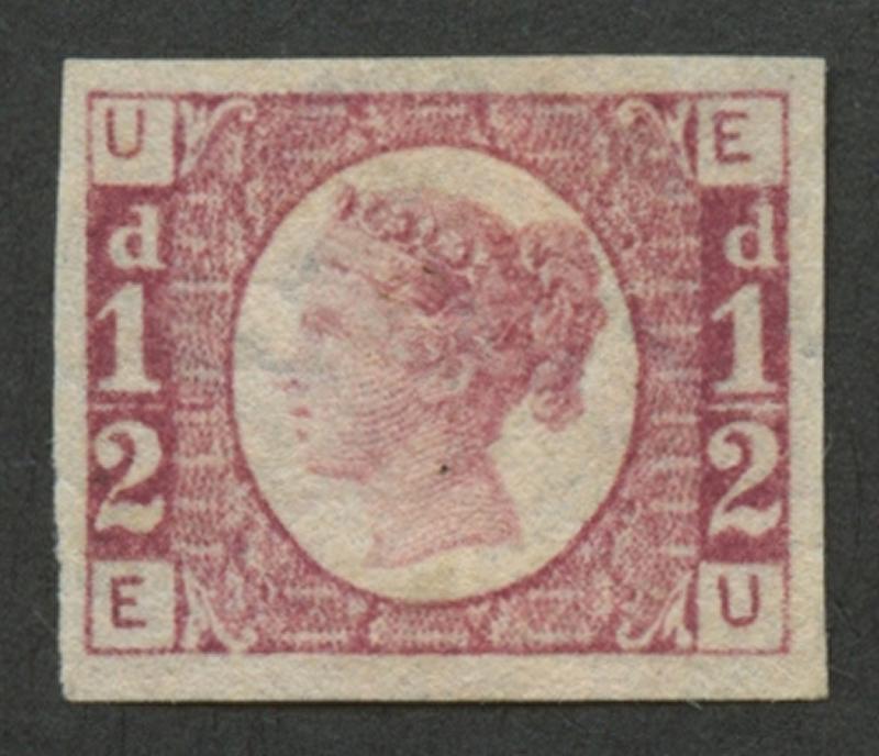 1870-79 Bantam ½d deep rose-red Plate 1 Imperforate single SG 49a, good even margins, large-part gum, Cat £2400+. Superb. (Image1)