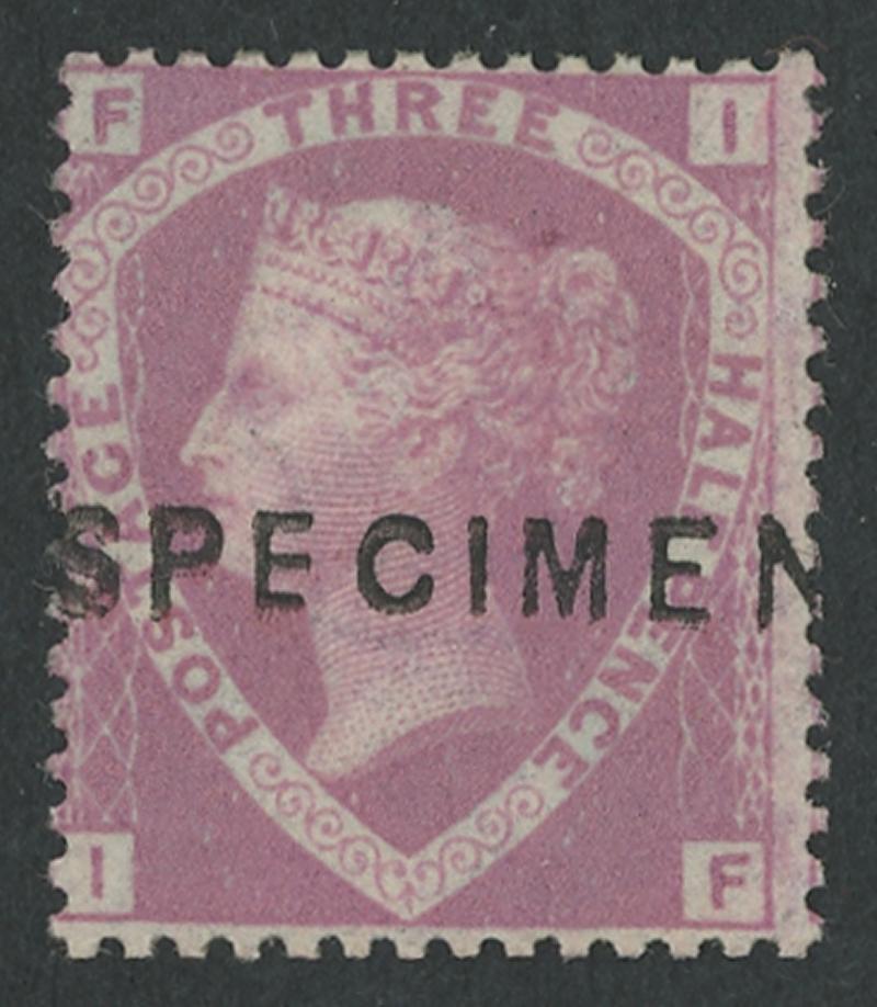 1870 QV Line Engraved New Values 1½d rosy-mauve on Blued Paper SG 53a with 'SPECIMEN' (Type 2) overprint prepared for use in 1860 but unissued SG Specialised G5s, above-average centring, no gum, Cat from £2250+. (Image1)