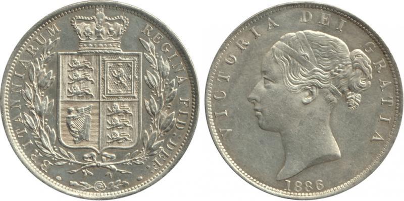HALF-CROWN: 1886 2/6d QV Young head Spink 3889, KM 756, Uncirculated. (Image1)