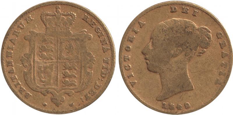 HALF-SOVEREIGN: 1842 QV Young Head Shield reverse, Marsh 416, Spink 3859, VG, (Image1)