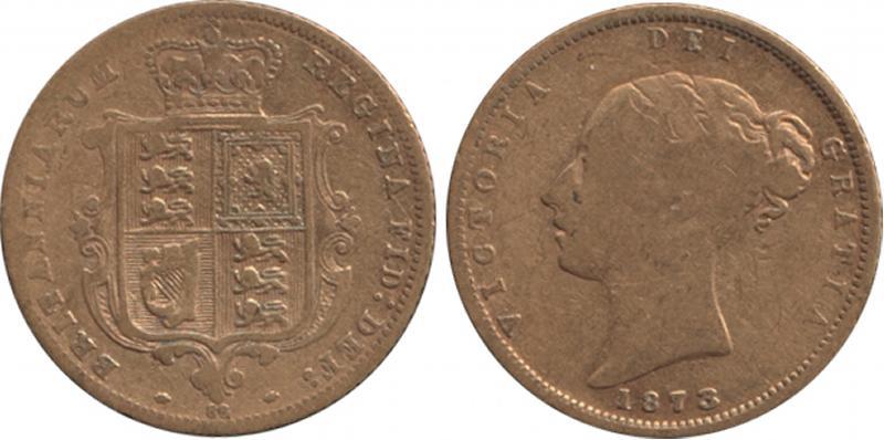 HALF-SOVEREIGN: 1873 QV Young Head Shield reverse, Die '86' (unlisted), Marsh 431, Spink 3860D, Fine. (Image1)