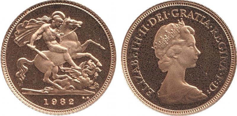 HALF-SOVEREIGN: 1982 Proof QEII Second Bust St George reverse, Marsh 544A, Spink SB1. (Image1)
