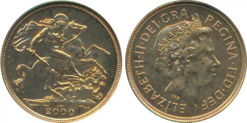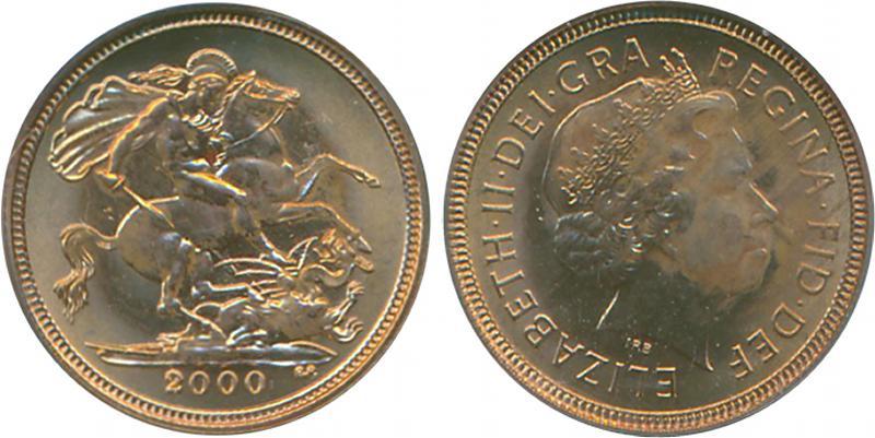 SOVEREIGN: 2000 QEII Fourth Bust St George reverse, Marsh 314, Spink SC4, in PCGS holder graded 'MS68'. (Image1)