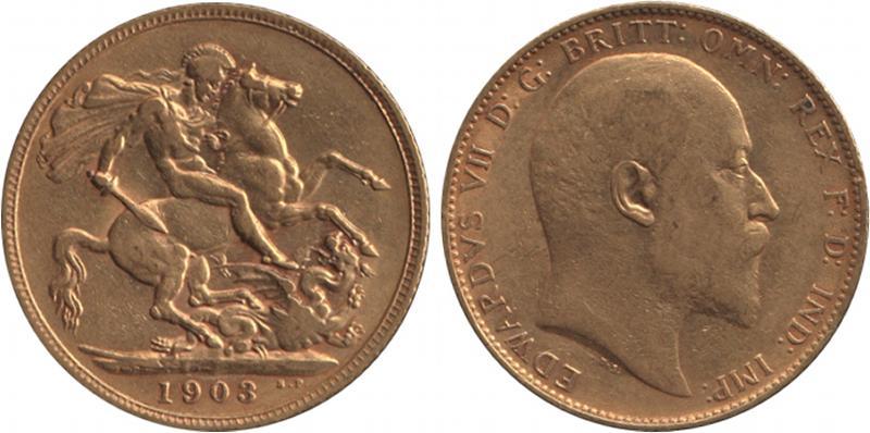 SOVEREIGN: 1903 KEVII St George reverse, Marsh 175, Spink 3969, aVF. (Image1)