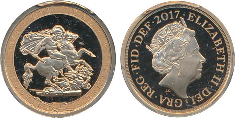 SOVEREIGN: 2017 Proof QEII Fourth Bust St George reverse (as 1817 Sovereign), Marsh 347, Spink SC12, in PCGS holder graded 'PR69DCAM'. (Image1)