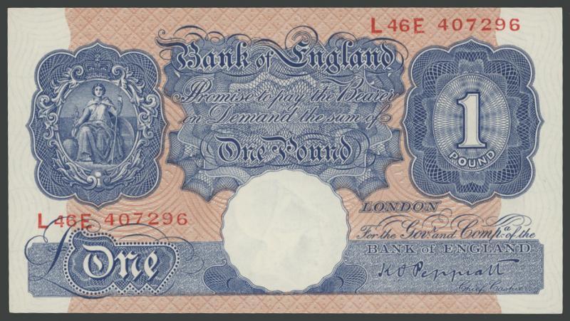 1934-48 Peppiatt group comprising 1934 £1 green Duggleby B238; 1940 Emergency Issue 10/- mauve B251, £1 blue B249 (Unc); 1948 Fourth Period 10/- red-brown B262; condition variable, aEF-Unc.