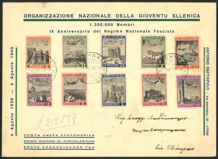 Yvert 40/49, 1940 National Youth Organization, the set of 10 values on a cover used on 4/MAY/1940 (it bears more franking on back, view image), very fine quality! (Image)