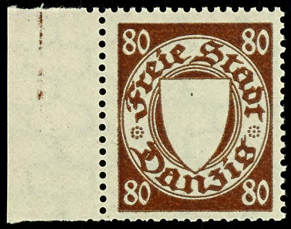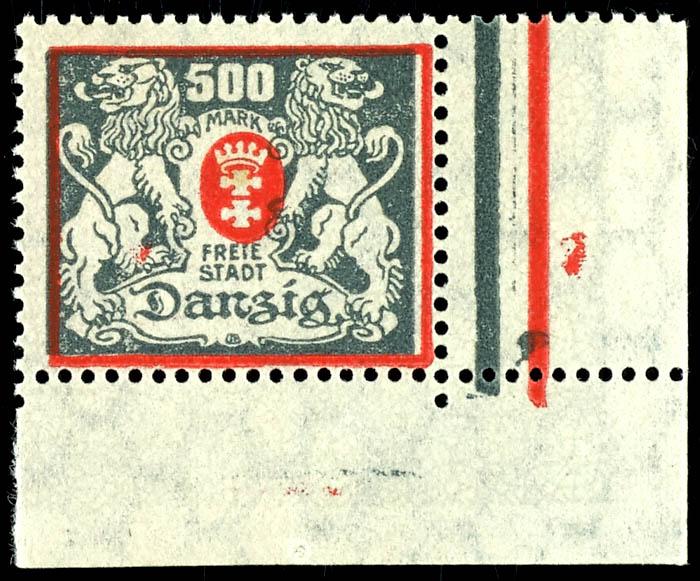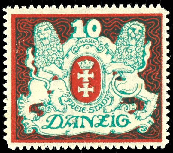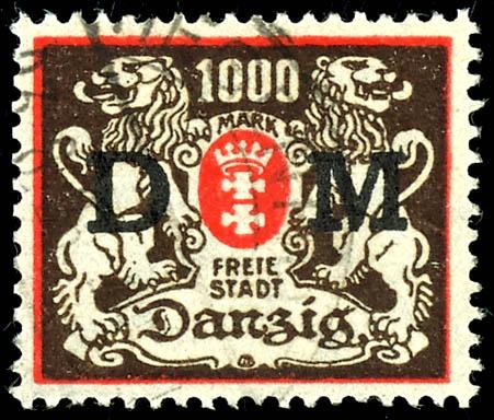 1 Mark Kogge mit Plattenfehler I "Kogge im Feuer", zeitgerecht entwertet "Danzig * 1 t 15.4.21", tadellose Erhaltung, Fotobefund Gunnar Gruber BPP "in einwandfreier Qualität.", Mi. 240.-