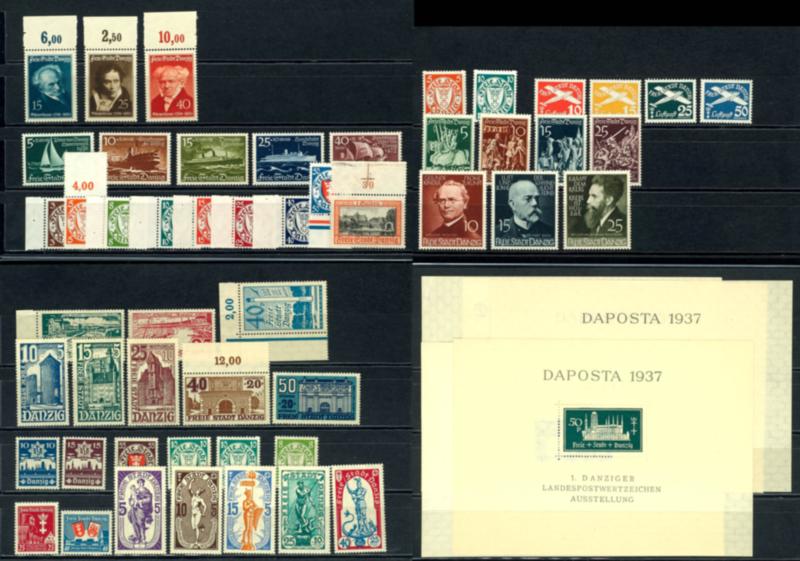 1920 - 1939, postfrisch/ungebraucht und gestempelte geführte Sammlung in zwei Kabe-Vordruckalben, im Anhang Dienst- und Portomarken sowie Port Gdansk, in den Hauptnummern ohne Mi.-Nr. 47/49 sog. Großer Innendienst augenscheinlich komplett (gemischt), dabei Wasserzeichen, Farbvarianten, Abarten wie fehlende Unterdrucke, die Erhaltung variiert etwas, bitte eingehend besichtigen!