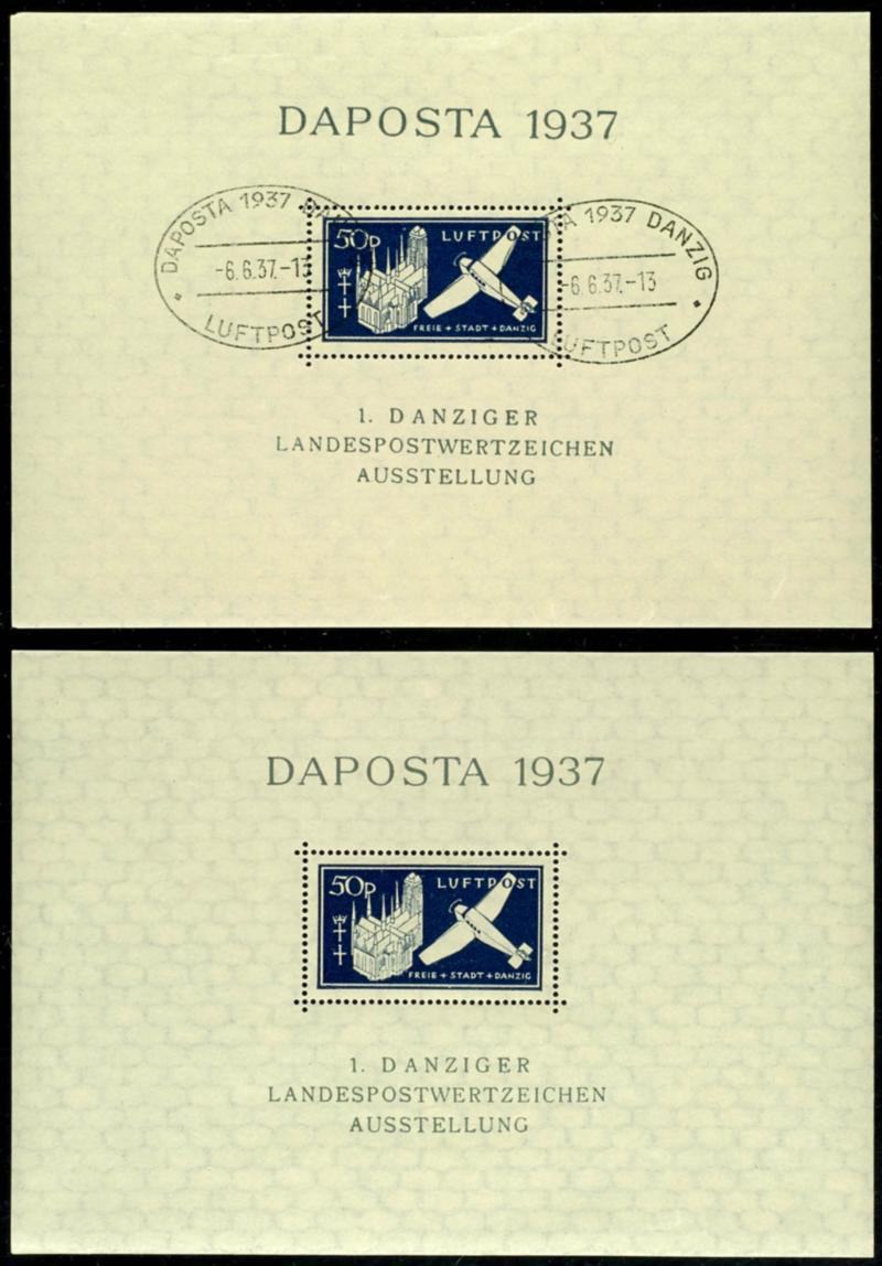 DAPOSTA-Block mit Plattenfehler "Kirchturmspitze rechts gebrochen". Dazu postfrischer Block ohne Plattenfehler, Mi. -.-