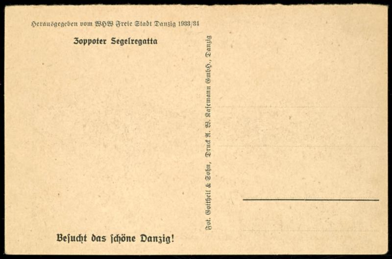 1934, 10 penny national coat of arms special postcard for the winter help work with picture 7 "Zoppoter sailing regatta", without postage stamp impression, unused (HP1/7) (Image 1)(Image)